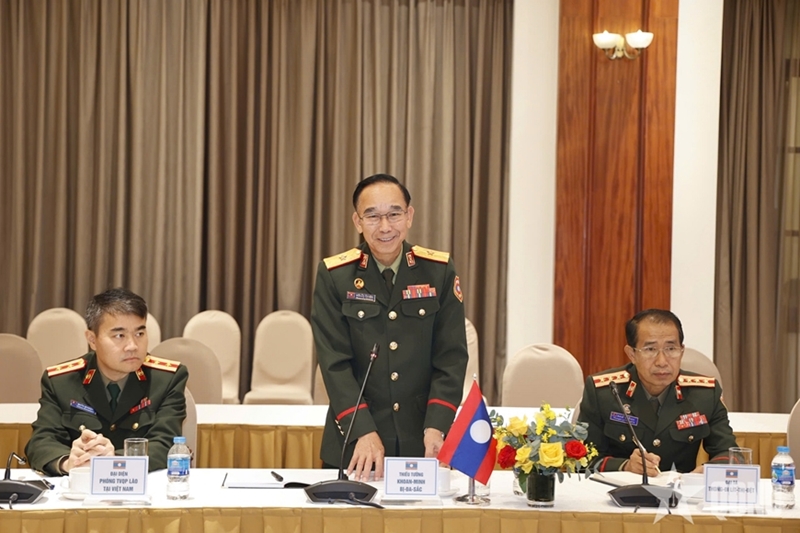 越南国防部军事科学局局长杨明海博士少将与老挝国防部军事科学-历史局局长Khuanming Bidasak博士少将共同主持会谈。