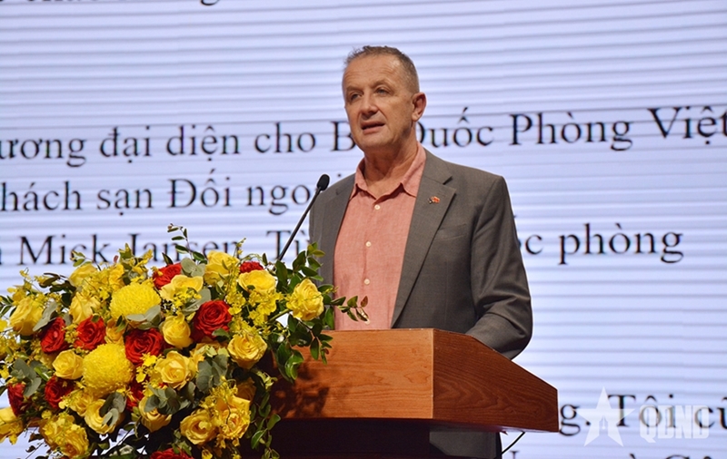 澳大利亚驻越南国防武官米克·詹森大校在会上发表讲话(图片来源:人民军队报) |