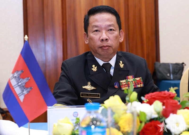 柬埔寨国家海上安全委员会副秘书长Tea Bunleam都督在会议上发言(图片来源:人民军队报) |