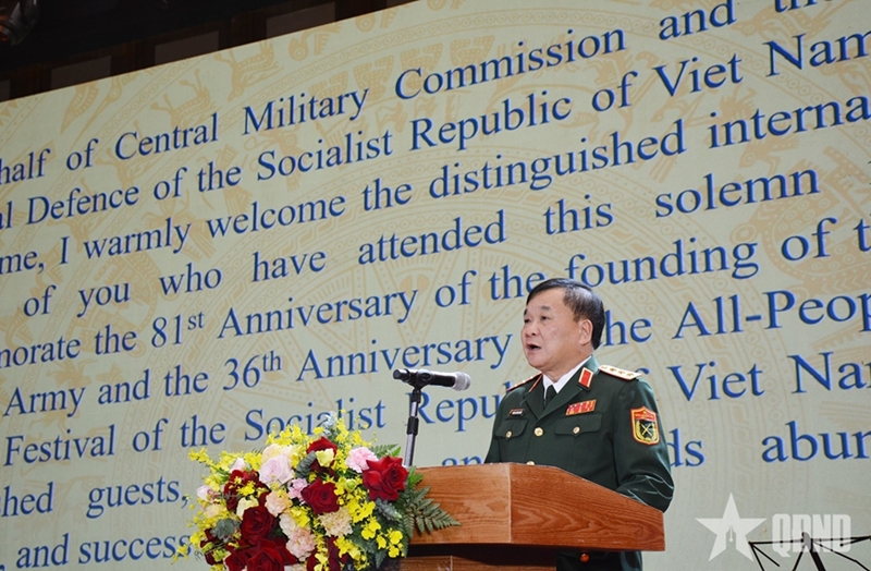 黄春战上将在招待宴会上发表讲话时强调,在81年建设、战斗与成长的历程中,越南人民军为民族解放、保卫祖国的斗争事业及履行崇高的国际义务做出了巨大贡献。
