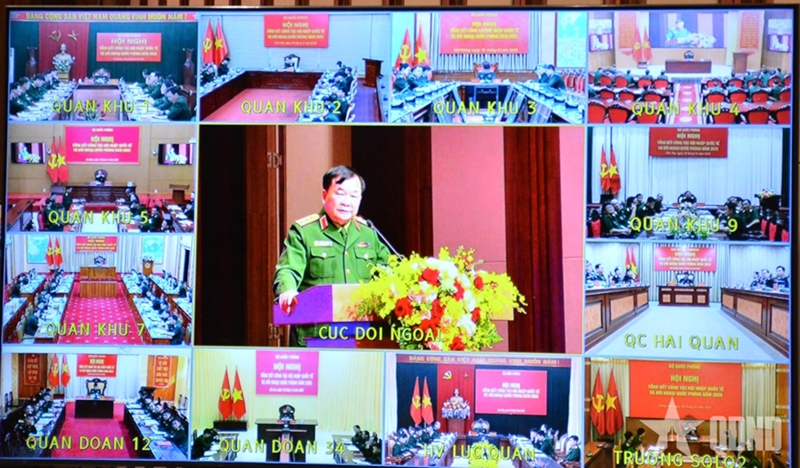 会议以线上线下相结合的方式举行,主会场设在国防部外事局,并与全军各分会场连线。越共中央委员、中央军委常委、国防部副部长黄春战上将主持会议。
