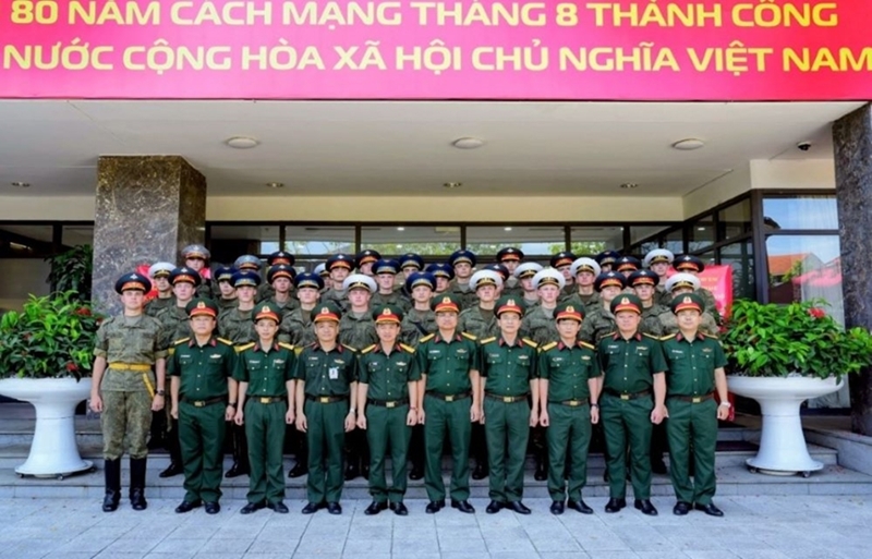 国际友人在回国之前,在Viettel学院与执行A80任务的越南军官合影留念(图片来源:人民军队报) |