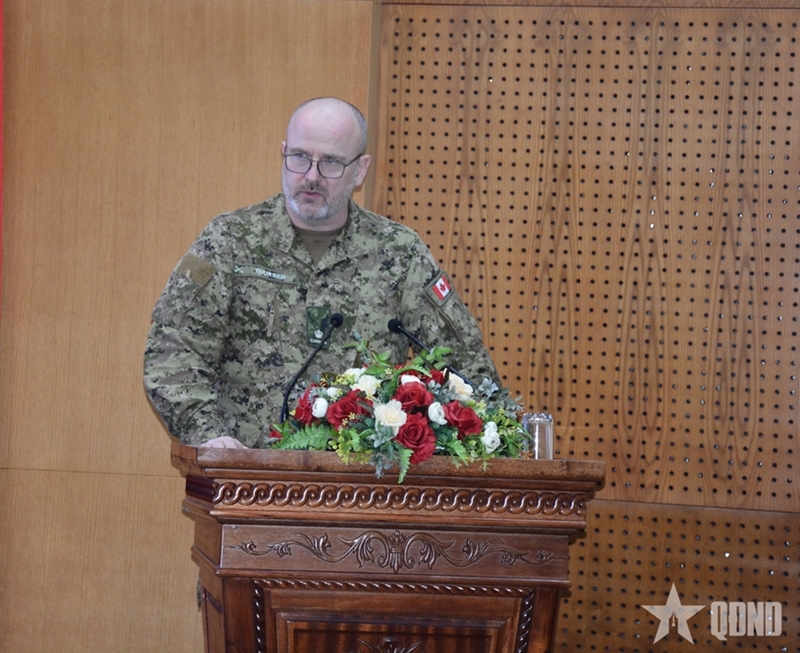 联合国维和行动部代表、加拿大军事合作与培训局代表、派员参训的各国驻越南国防武官出席仪式。