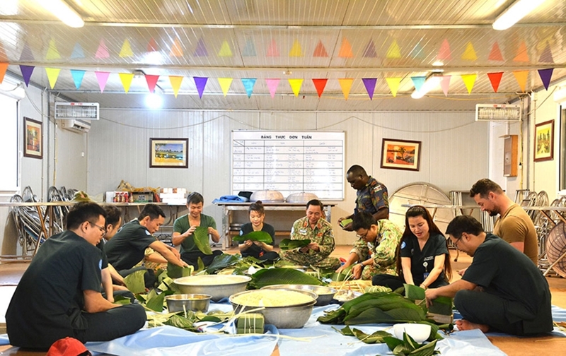 在履行维和使命的同时,越南维和部队也是文化使者。欢度春节不仅是七号二级野战医院干部、工作人员的节日,更成为一个国际同事共同参与的文化盛会。许多外国同事第一次体验越南春节,感到非常兴奋。