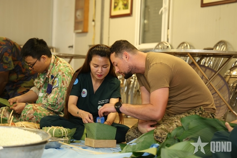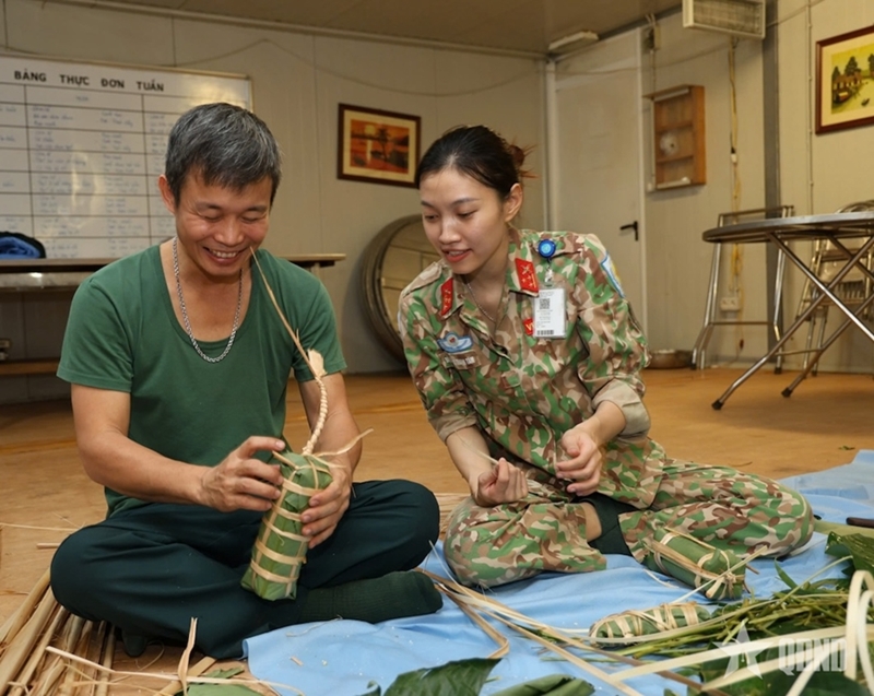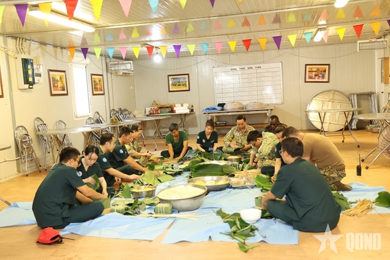 在这样特殊而艰苦的条件下,越南7号二级野战医院干部、工作人员——越南“蓝色贝雷帽”战士仍努力为自己“包好”一个富有民族特色的春节。因为比任何人都更加清楚,远离家乡的越南儿女始终希望营造一个温暖团圆的春节氛围,以缓解思乡之情;同时在特派团的国际社区中传播越南民族的良好文化价值。