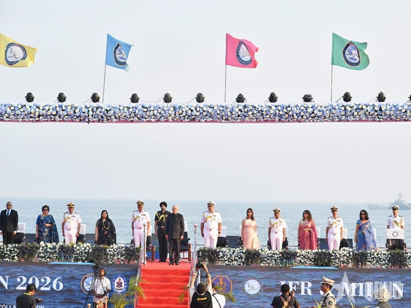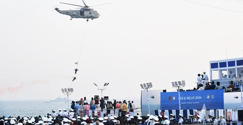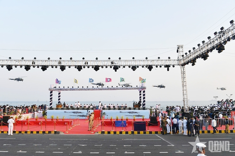 夜空被印度海军战斗机和直升机的精彩飞行表演照亮,为此次盛会营造了令人印象深刻的欢迎氛围。