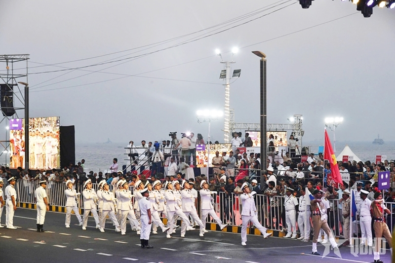 这场街头游行和表演不仅仅是一场军事仪式,更是一场充满活力的文化盛宴。传统艺术团体和创意模型生动地展现了印度的海洋遗产和文化多样性,呈现出一场令人叹为观止的视觉盛宴。
