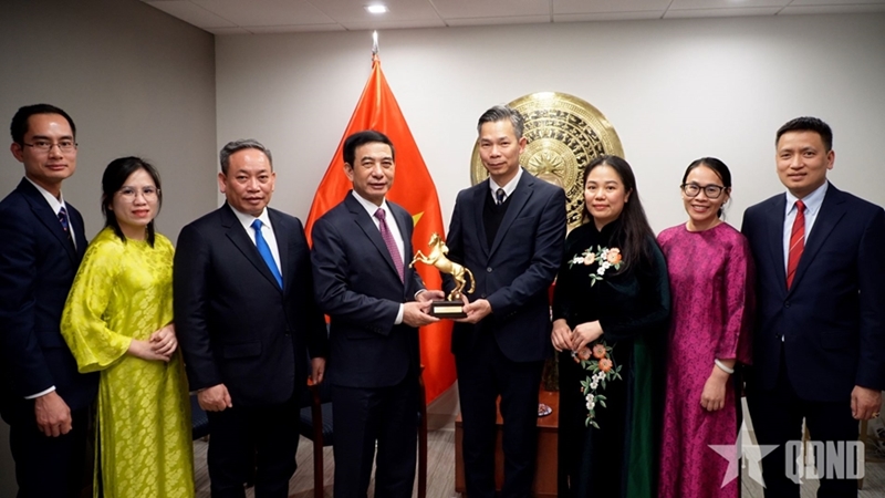 *在美国期间,潘文江大将走访慰问了越南驻美国国防武官处干部和军官,并致以新春祝福。