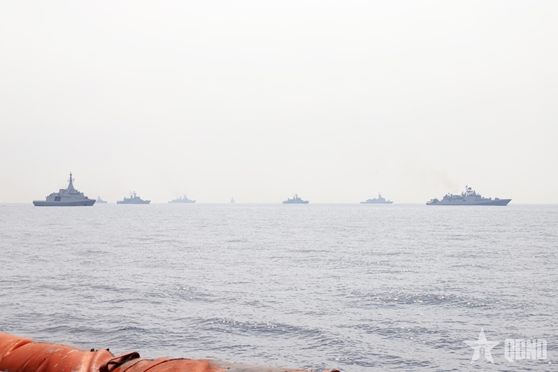 海上演练阶段在印度维沙卡帕特南市以东海域进行。来自十六个国家的三十九艘舰艇和三艘潜艇参加演练,分为三个战术编队和一个服务编队。各舰按照在港岸阶段出海计划会议上达成一致的方案主动机动,并实施既定训练科目。