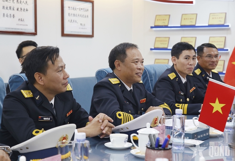 这是第十届越中边境国防友好交流活动框架内的活动之一。015号、012号舰编队及越南人民海军工作代表团与中国海军进行的第40次北部湾海域联合巡逻和海上联合训练。