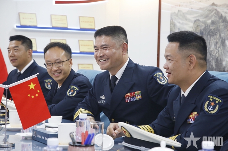 会见上,中国人民解放军海军广州基地副参谋长韩锋大校欢迎越方代表团访问防城港和参加第十届中越边境国防友好交流活动框架内的各项活动,希望此访将给两国海军军官、水手留下美好印象。