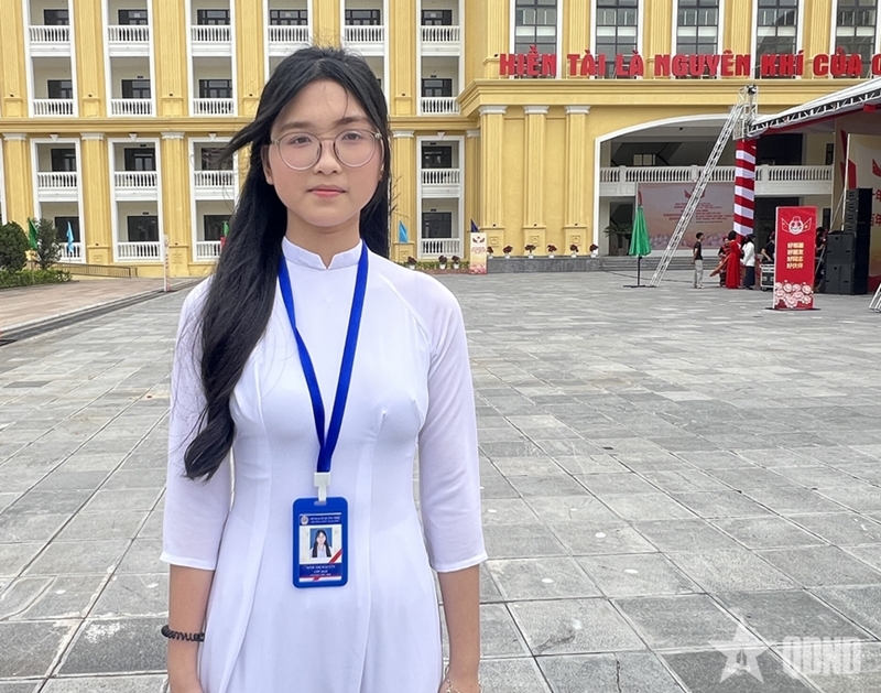 广宁省芒街市陈富高中学校一年级学生宁氏海燕(图片来源:人民军队报) |