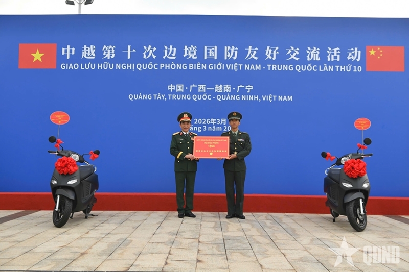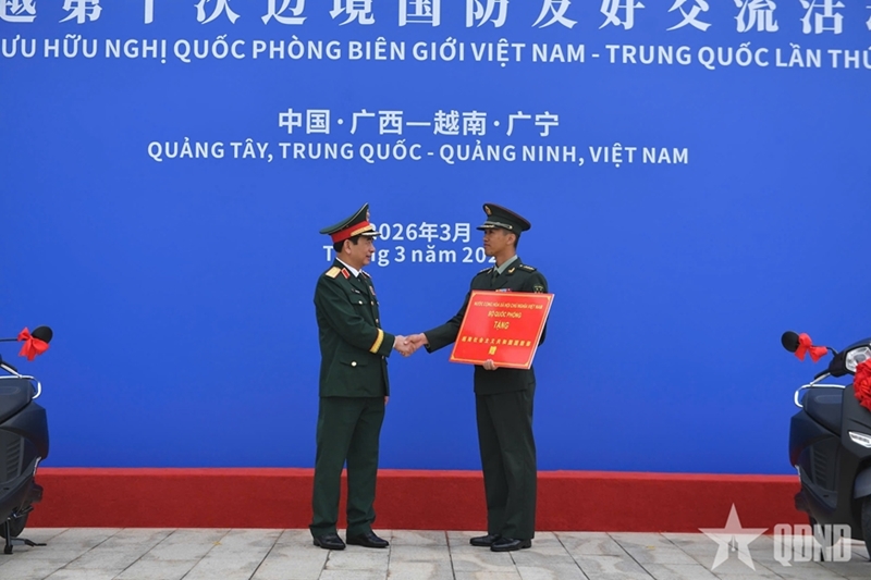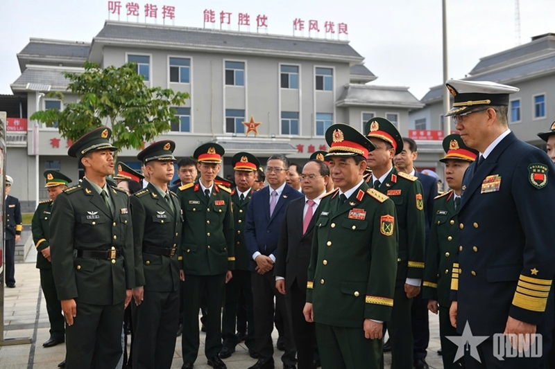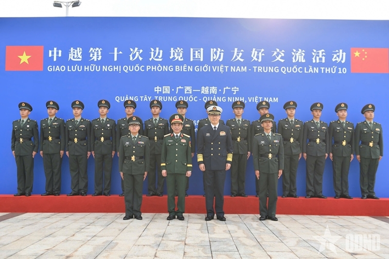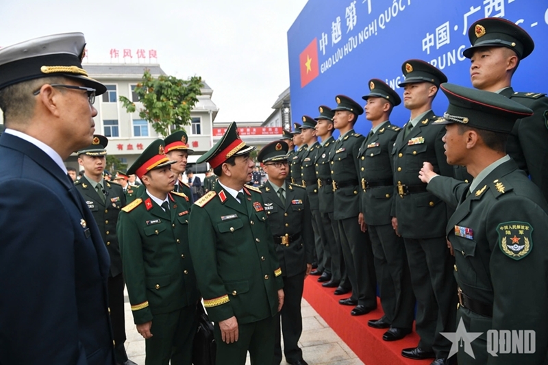 人民军队:在越中第十届边境国防友好交流活动框架内,3月19日上午,在东兴口岸举行的欢迎仪式结束后,越共中央政治局委员、中央军委副书记、国防部部长潘文江大将同中国国防部部长董军上将和两国代表团在中国广西壮族自治区正式启动交流活动。