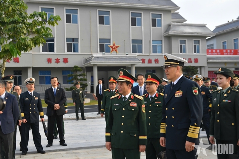 作为此次在中国系列交流活动的首站,潘文江大将和董军上将率团参访了东兴边防连。