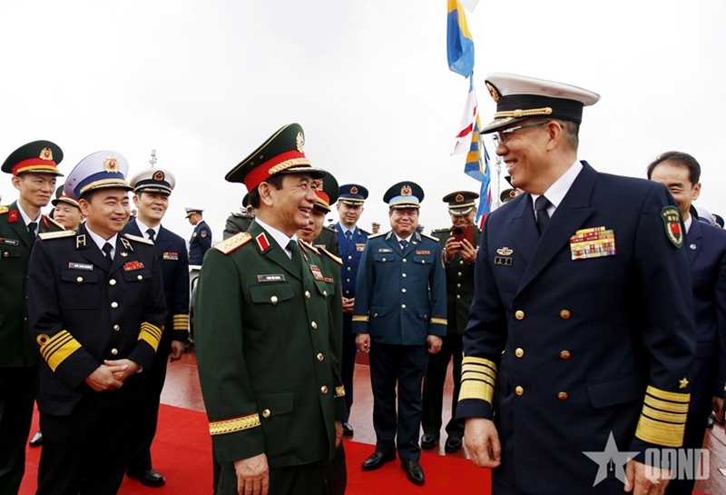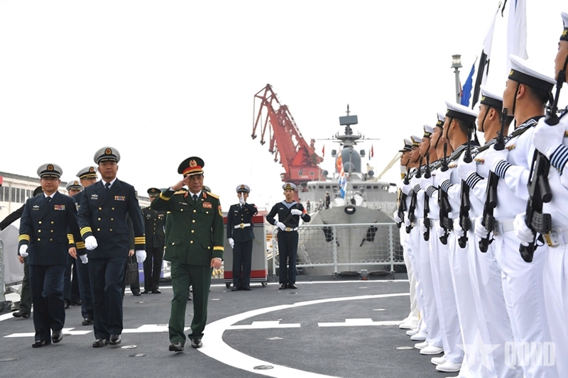 在抵达防城港之后,潘文江大将与董军上将参观了越中海军历次联合巡逻的图片展区;登上中国海军568号舰和越南海军015号舰参观,并慰问双方指挥员、军官和水手。