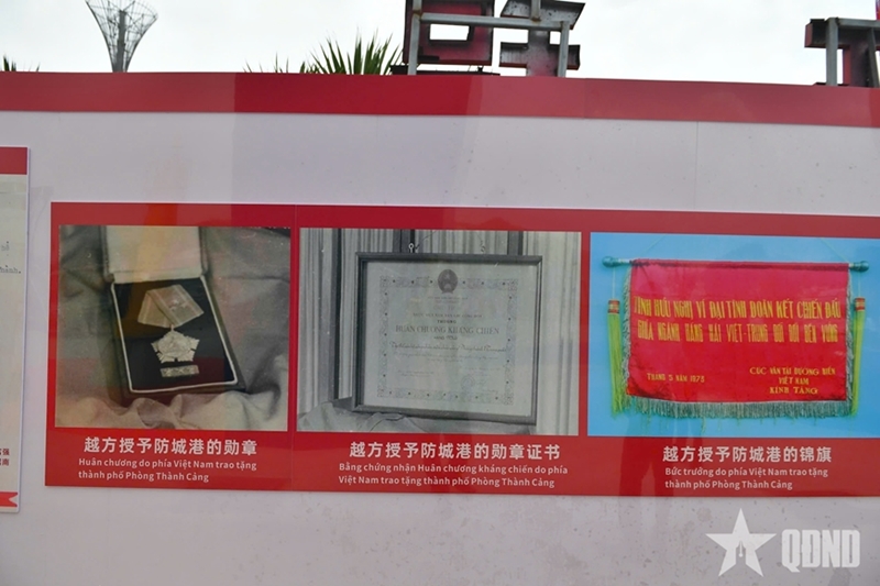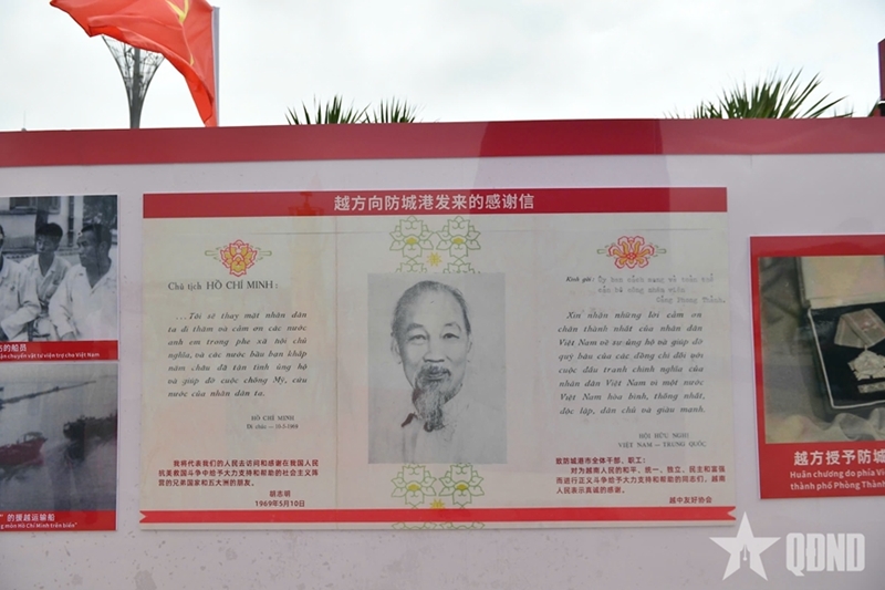 两位部长参观纪念碑以及有关胡志明海上小道相关内容的展墙。