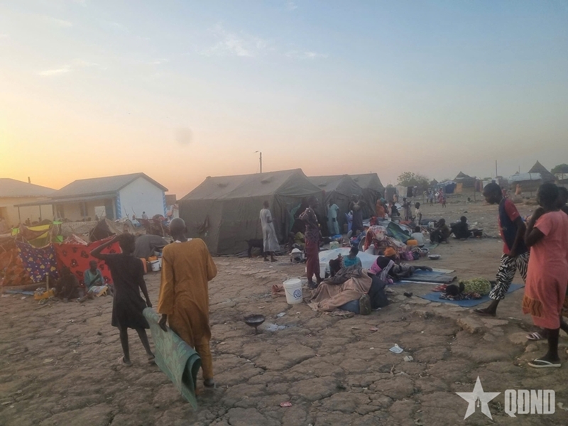 从阿比耶姆诺姆的数千名难民正聚集在临时难民营,等候迁入联阿安全部队的平民保护区(图片来源:人民军队报) |