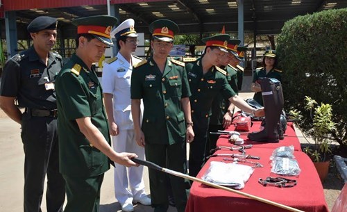 越南年轻军官代表团参观印度国防学院训练教具(图片来源:人民军队报)
