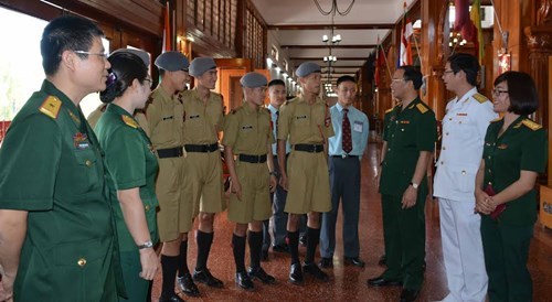 越南年轻军官代表与留学印度国防学院的越南学员亲切交谈(图片来源:人民军队报)