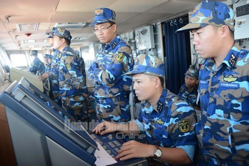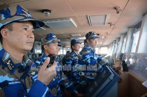 3月26日六点,011丁先皇军舰舰长阮光辉中校(左)指挥舰船驾驶到集结地点。