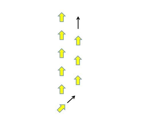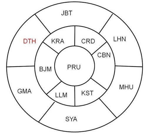 箭头形排成后,各军舰分为两组驾驶到新地点,参加航海安全演习。在这一内容,各军舰排列成扇形 。越南丁先皇军舰的位置为红色的DTH,负责警戒和保障队形安全。