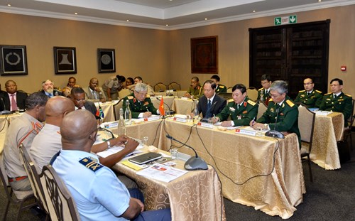 人民军队:越南与南非第二次防务政策对话3月29日在南非首都比勒陀利亚举行。越共中央委员、中央军委常委、国防部副部长阮志咏上将与南非国防部秘书古鲁贝(Sam Makhudu Gulube)博士共同主持对话。