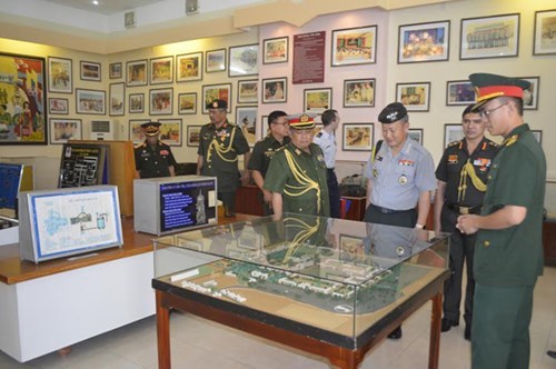 各国驻越国防武官代表团参观通信军官学校的荣誉室(图片来源:人民军队报)