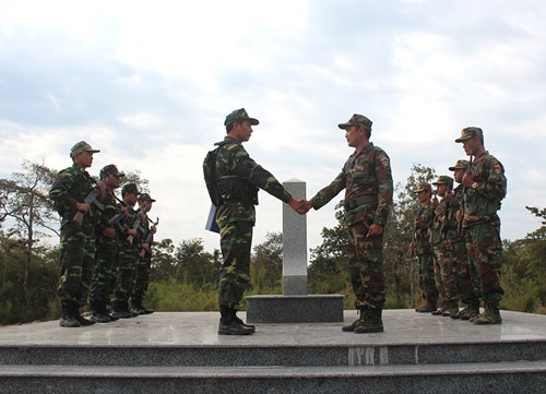 越南得瑞口岸边防屯与柬埔寨蒙多基里省军事小区103营举行边界联合巡逻
