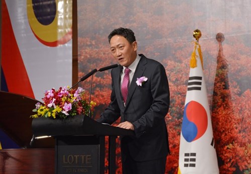 Kim Do Hyon大使在招待会上致开幕词时回顾了韩国政府和人民在建国和发展国家事业中所取得的成就。