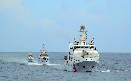 越南海警8001号船与印度海岸警卫队在印度洋的联合演练(图片来源:人民军队报) |