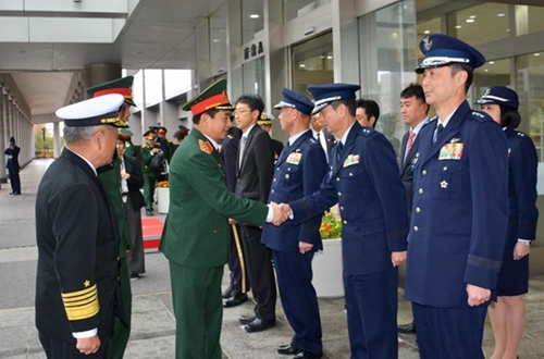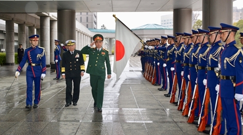 越南高级军事代表团欢迎仪式后,潘文江上将与日本自卫队统合幕僚长河野克俊都督举行会谈。双方一致认为,建交45多年来,越日两国在各领域上已成为彼此的战略伙伴。在两国关系良好发展势头的背景下,双方大力促进两国防务合作关系。合作内容不断得以扩大并取得实效,为各自国家和地区的和平、稳定作出贡献。双方一致认为,双方的互信得以增强、相互理解得以加深,军兵种之间的合作与交流得以推进。双方在东盟地区论坛、东盟防长扩大会议等多边论坛上保持密切配合与相互支持。