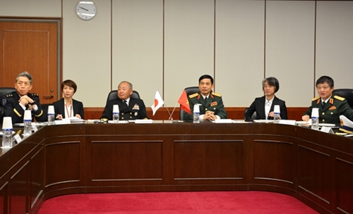 会谈后,日方向越南高级军事代表团介绍地区安全环境和日方的政策。