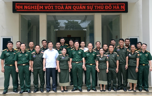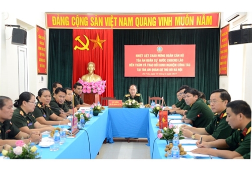 Vongphone Souvannachak中校对河内首都军事法院的周到接待表示感谢,并强调,与河内首都军事法院进行交流和交换经验是老挝军事法院干部队伍学习借鉴越方经验的宝贵机会,