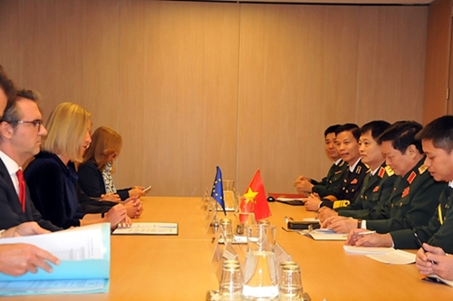 FPA协定签署仪式后,吴春历部长会见莫格赫里尼副主席。双方对该协定的签署表示高兴,强调愿竭尽全力推动双方防务合作。吴春历部长与莫格赫里尼副主席一致同意尽早开展越南在FPA框架所选择的合作领域。