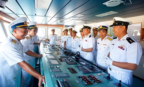 越南海军四区162旅军官参观“马达班”号军舰(图片来源:人民军队报) |