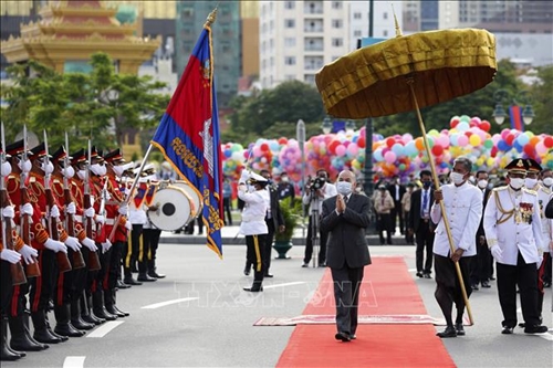 西哈莫尼国王在仪式上检阅仪仗队(图片来源:越通社) |