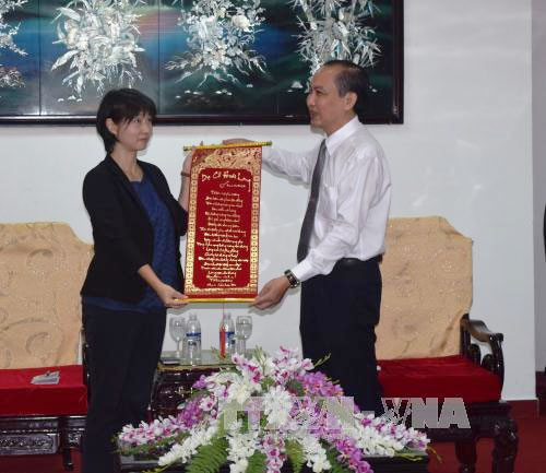 | 薄辽省人民委员会副主席潘如愿向深川·敦子赠送纪念礼物(图片来源:越通社) |