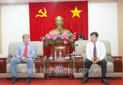 平阳省人民委员会主席陈清廉(右)会见安海斯-布希啤酒公司南亚-太平洋地区副总裁肯·希区柯克。(图片来源:binhduong.gov.vn)