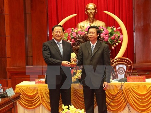 老挝政府副总理宋赛·西潘敦与前江省领导(图片来源:越通社)