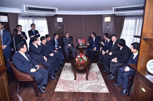 越南外交部副部长阮国强、广宁省省委书记阮文读和广宁省人委会主席阮德龙随同。