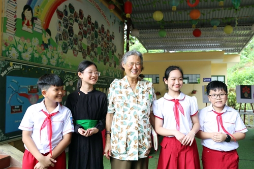 泰国公主玛哈·扎克里·诗琳通与南强小学学校学生合影(来源:laocai.gov.vn) |