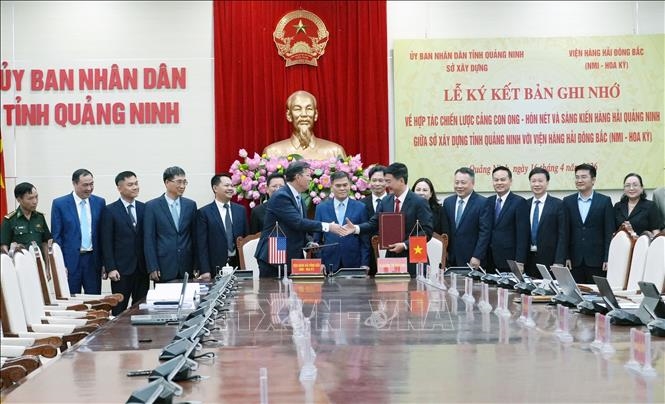 广宁省建设厅与美国东北海事学院正式签署关于蜜蜂—鸿蔑港区及广宁海运倡议战略合作的谅解备忘录(图片来源:越通社) |