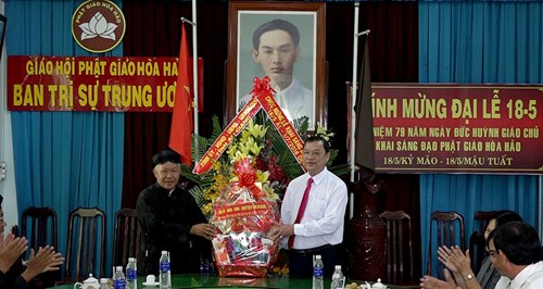 安江省领导人向和好教协会中央治事委员会表示祝贺(图片来源:baoangiang.com.vn) |