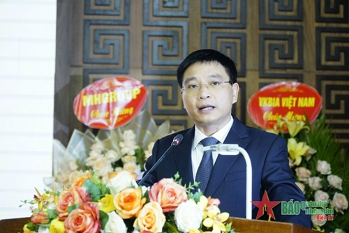 奠边省委书记阮文胜在会议上发表讲话(图片来源:人民军队报) |