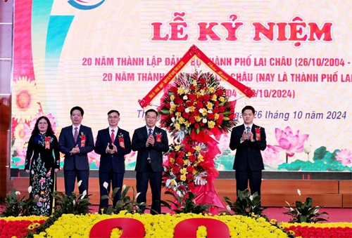 越共中央候补委员、莱州省委常务副书记武孟河对莱州市各级党委、政府和各族人民20年来取得的巨大成果给予表扬和表示祝贺。他同时要求今后莱州市各级党委、政府和各族人民继续革新和提高党的主张和路线、国家的法律和政策普及宣传工作质量质量;集中发挥战略位置,有效开发各潜力、优势,动员和有效利用各种资源来投入经济社会发展;有效开展2021-2030年国家目标计划,旨在发挥核心城市的作用,推动省和地区经济发展。