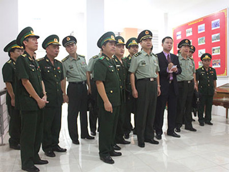 广州军区代表团参观越南国防部直属边防学院的纪念室(图片来源:人民军报)