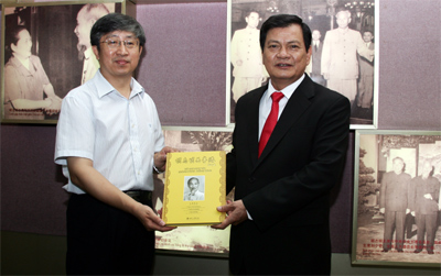 越南国防部代表团参观了有关胡志明主席在广州从事革命活动期间的遗物和历史资料。胡志明主席在广州从事革命活动期间,得到中国共产党和共产国际的帮助,他老人家将越南革命组织“心心社”改组为越南青年革命同志会。这是越南第一个以马列主义理论为指导思想的革命组织,也是越南共产党的前身。越南青年革命同志会成立以后,马上吸引了诸多越南爱国青年加入,并参加由胡志明举办的政治训练班。受训的青年已经成为越南革命斗争以及成立越南共产党的骨干力量。