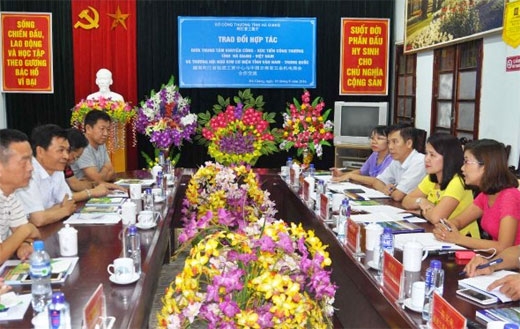 | 河江省工商厅工助与投资促进中心与云南省五金机电商会合作促进会场景(图片来源:hagiang.gov.vn) |