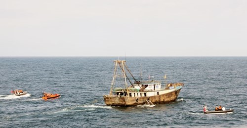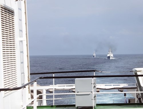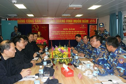 按计划,中方编队指挥长为中国海警南海分局副局长刘添荣已赴CSB-8004号船与越南海警编队海警第一区副司令、参谋长、团长陈文诗大校举行会谈,旨在一同贯彻第二次越中北部湾共同渔区海上联合检查活动的方案。