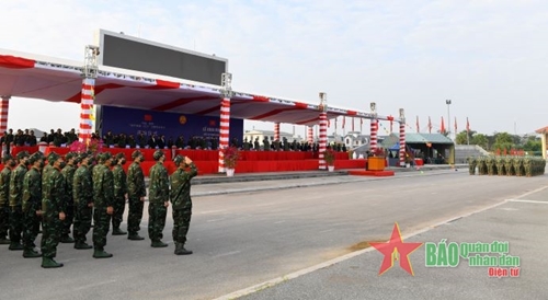 阮雄胜少将在开始仪式上发言(图片来源:人民军队报) |